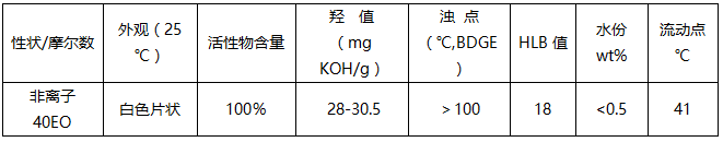 HLB值 | 10.5 | 11.5 | 13 | 14 | 14.5 | ||